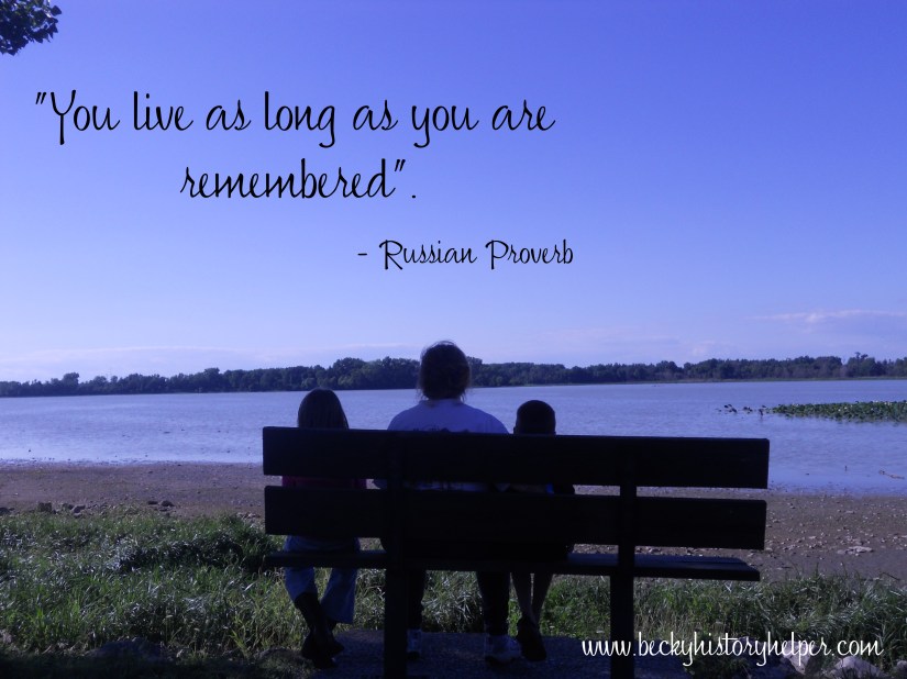 I firmly believe in the Russian proverb I posted a while back, “You live as long as you are remembered” and I try to keep each and every one of my ancestors alive.