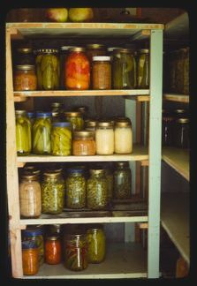 I never thought to take a photo of canned goods when I was little so I found this photo on the Library of Congress website. Mullen, Patrick B. Florence Cheek with quilts and canned food, Traphill, North Carolina. United States Traphill Wilkes County North Carolina, 1978. Traphill, North Carolina, None , 8. Photograph. https://www.loc.gov/item/afc1982009_pm_015/.