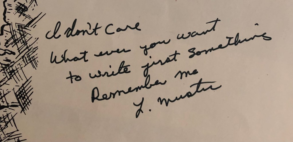 He refused to sign my yearbook in 7th grade but I convinced him to sign it in 8th grade. He wrote exactly what I said… “I don’t care, whatever you want to write just something. Remember me. L. Muster”. He added the “remember me” part.