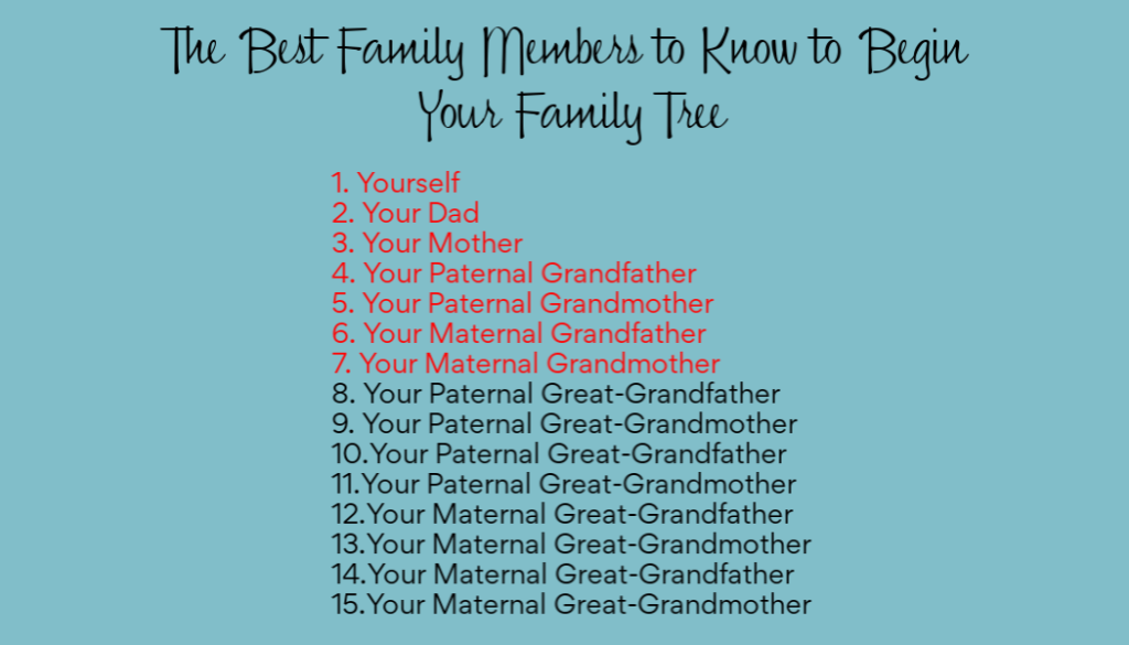 It’s best to have at least 7-people to begin to find your ancestors, you will have a slightly easier time if you have the information for 15.