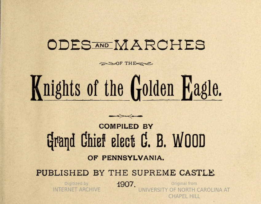 The Knights of the Golden Eagle is a fraternal organization that began in 1873 in Baltimore, Maryland (I say is as via a Google Search there are claims it is still handing out scholarships in areas of Pennsylvania). The group was set up in Philadelphia by 1876 (with the help of the Odd Fellows).