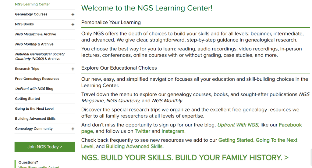 I’ve done the first 2 sessions of the “Family Foundations” course offered by the National Genealogical Society. You have 6 months to go through a variety of modules that educate you in all types of topics related to doing your family tree. FamilySearch, Newspapers, Cemeteries, Vital Records, Research Plans, these are just some of the topics you learn about in the first 2 sessions. I still have part 3 to take covering Probate Records, DNA, Religious Records, and more! I really have learned a great deal taking these courses. They do have a cost (reduced for members) but it’s been well worth it.