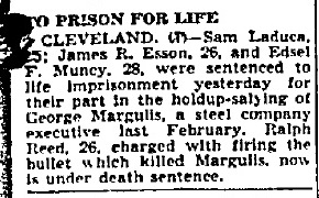 As was stated in The Zanesville Signal above, James Esson, Samuel LaDuca, and Edsel Ford Muncy were all sentenced to life in prison for their part in the robbery and murder of George Margulis. But did they?